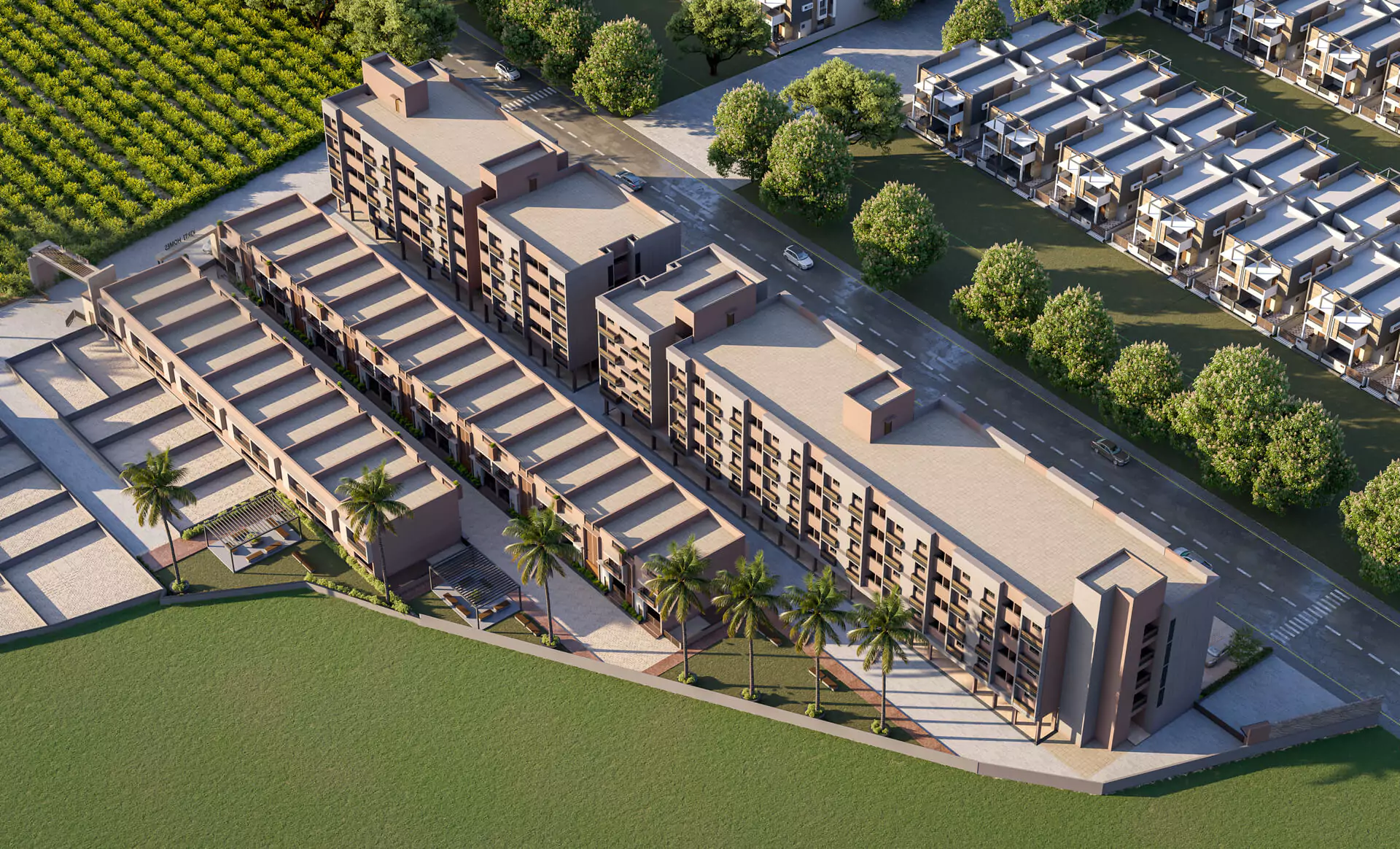 Ideal for families who value open spaces and a calm environment, these row houses in Chandial, near the tranquil neighbourhood of Vadod, blend urban design with a touch of nature. Wide internal roads, landscaped surroundings, and quality construction make every home a haven of peace and pride.